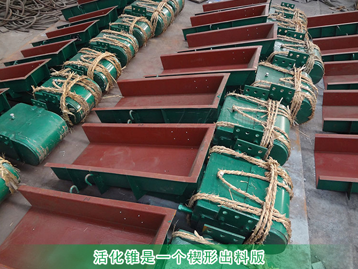 活化錐是一個(gè)楔形出料版,小頭向上,固定在共振體上,由于激振器產(chǎn)生的激振力的作用,活化錐在振動方向上和共振體一起作近似于簡諧振動。通過活化錐產(chǎn)生向上的力,將水平振動高效地傳遞到頂部物料,振動力所產(chǎn)生的擾動能量松動物料使其下落。