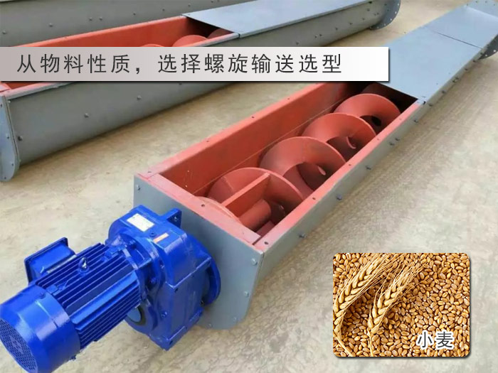 螺旋輸送機的不同就還在于螺旋輸送機的葉片的不同所以,要根據被輸送物料性質,確定螺旋輸送機的選型,如:輸送小麥、稻谷等散落性較好的物料時應選用滿面式葉片;輸送油料類黏性大、易粘結的物料時,為了防止堵塞,應選用帶式葉片。
