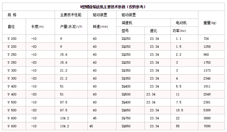 以下關于U型螺旋輸送機選型作幾點簡要分析: