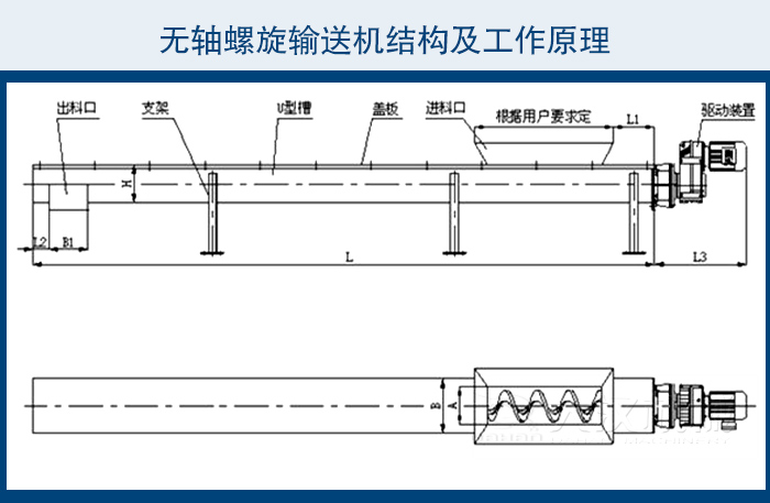 無軸螺旋輸送機可輸送傳統有軸螺旋輸送機和皮帶輸送機不能或不易輸送的物料。如顆粒狀和粉狀物料。濕的和糊狀物料。半流體和粘性物料。易纏繞和易堵塞物料。無軸螺旋輸送機有特殊衛生要求的物料。