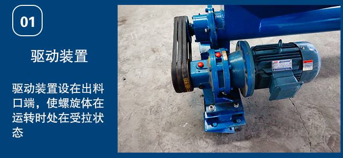1)驅動裝置:采用擺線針輪輪減速機或軸裝式硬齒面齒輪減速機,設計時應盡可能將驅動裝置設在出料口端,使螺旋體在運轉時處在受拉狀態。頭部裝配有推力軸承,可承受輸送物料時產生的軸向力。