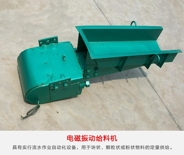 電磁振動給料機是一種實行流水作業自動化的設備。電磁振動給料機用于把物料從貯料倉或其它貯料設備中均勻或定量的供給到受料設備中,是實行流水作業自動化的必備設備。用于塊狀、顆粒狀或粉狀物料的定量或連續的供給。廣泛應用于礦山、冶金、煤炭、電力、化工、食品、玻璃、耐火材料等行業。