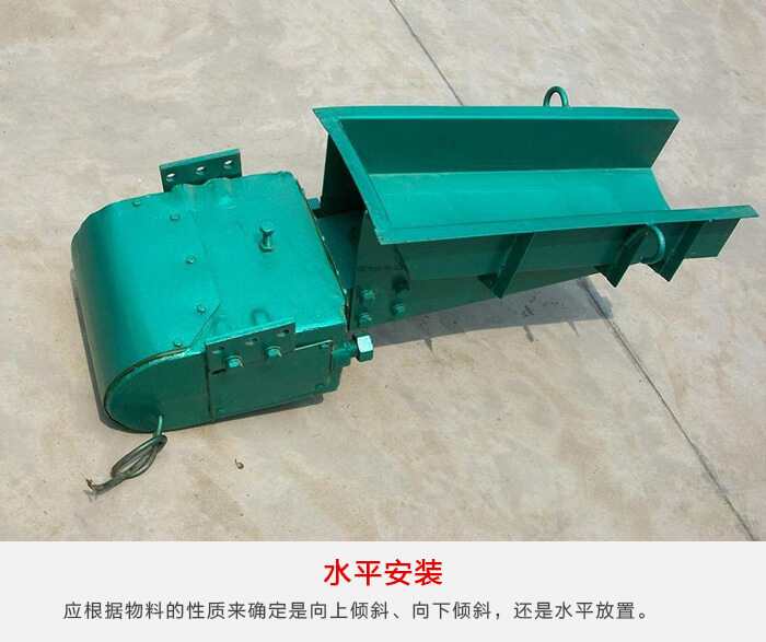 電磁振動(dòng)給料機(jī)槽體可以水平安裝,也可以傾斜安裝,其給料能力與下傾角度成正比,但下傾角過大容易引起物料自流,難以保證給料精度。因此應(yīng)根據(jù)物料的性質(zhì)來確定是向上傾斜、向下傾斜,還是水平放置。