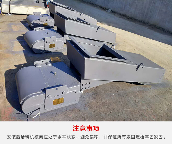 安裝后給料機(jī)橫向應(yīng)處于水平狀態(tài),避免給料機(jī)工作時(shí)物料向一側(cè)偏移,并保證所有緊固螺栓牢固緊固。