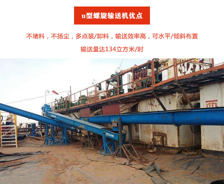 U型螺旋輸送機采用小直徑/高轉速/變螺旋的螺旋體設計,能保證在工作過程中輸送順暢、上料均勻快速;其輸送量可達134m³/h 。