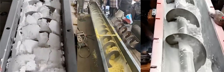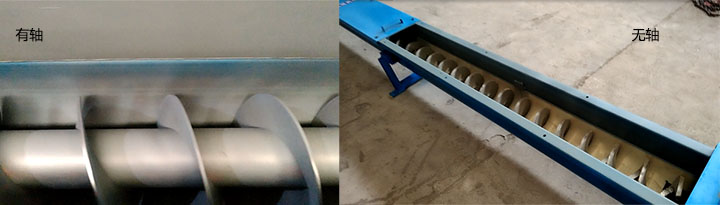 U型無軸螺旋輸送機沒有中心軸的設計,螺旋葉片厚度在3mm以上,強度高,耐磨性好,適合有輕微吸潮、易結塊,易粘附的含濕堿粉輸送,可以徹底解決濕堿粉在軸上“抱軸”堆積和堵塞機器的問題,但是其成本比有軸貴1000-5000元不等。