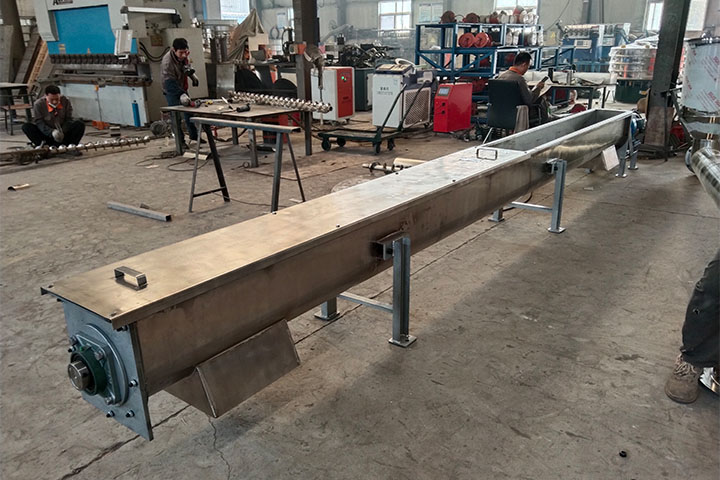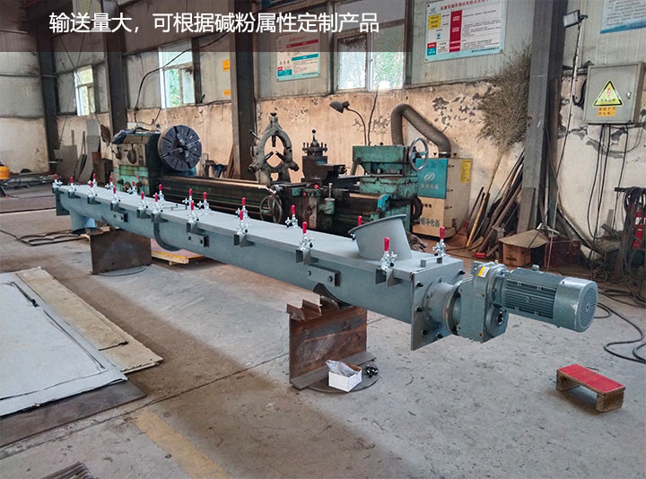 大漢堿粉U型螺旋輸送機廠家提供碳鋼和不銹鋼兩種材質,為了在輸送時堿粉不粘在槽壁一般使用使用不銹鋼材質,輸送長度在1-30米,可根據現場需求加裝進料口,移動輪,對于溫度較高的堿粉還可以添加冷卻裝置,支持定制長度,直徑,材質等。