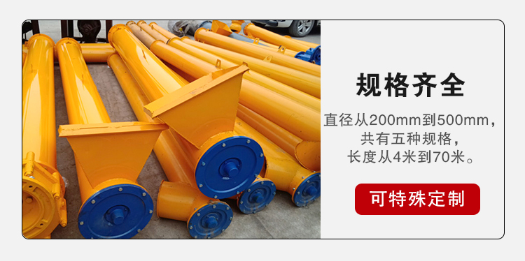 管型螺旋輸送機是利用螺旋旋轉而推移物料的連續(xù)輸送設備,適用輸送面粉、谷類、水泥、化肥、灰渣、沙子、石子、煤粉、小塊煤等物料。由于機體內有效流通面積小,螺旋輸送機不宜輸磅易變質的、粘性太大、易結塊的物料。