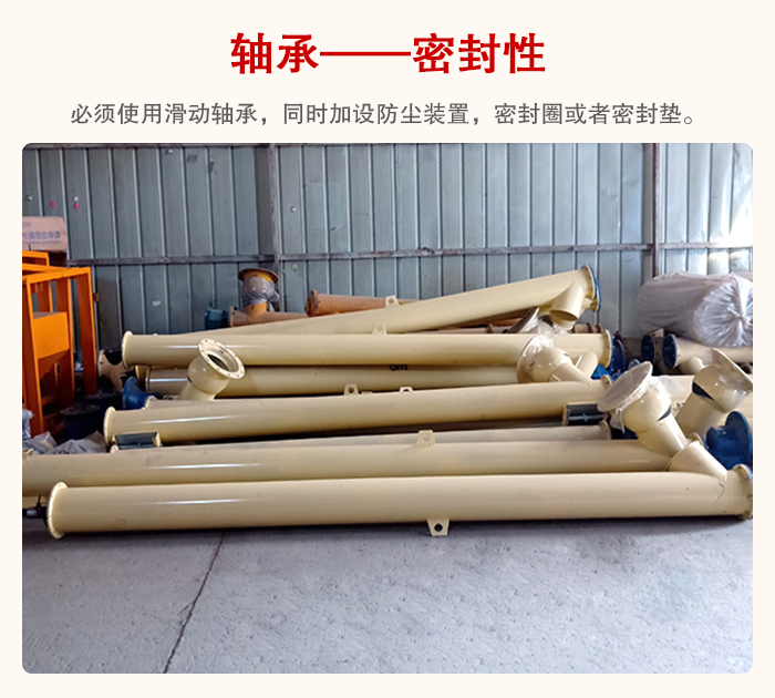 管型螺旋輸送機必須使用滑動軸承,同時加設防塵裝置,密封圈或者密封墊,這樣不會導致