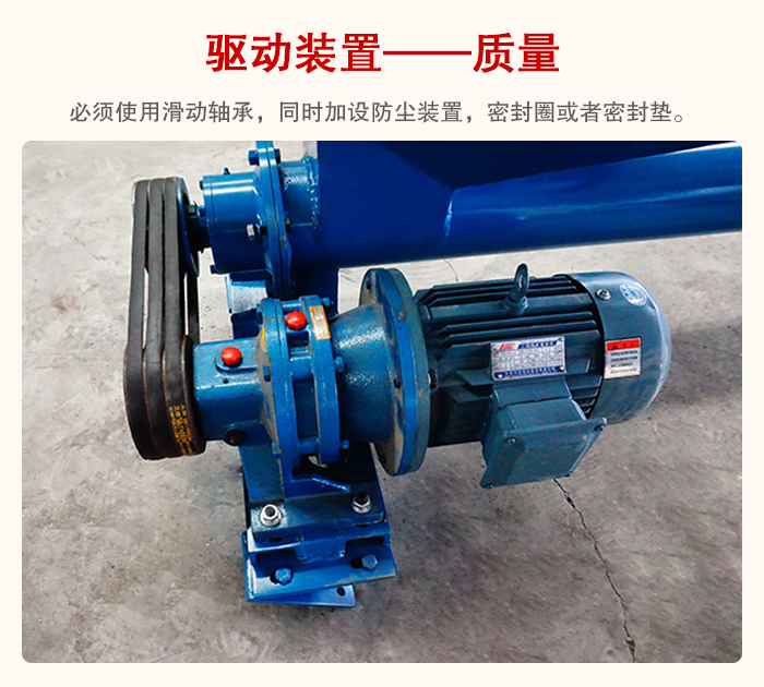 管型螺旋輸送機的驅動裝置由振動電機和減速電機組成,其質量的好壞直接影響設備的運轉情況。