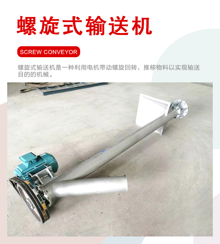 簡介:螺旋式輸送機(jī)是一種利用電機(jī)帶動螺旋回轉(zhuǎn),推移物料以實(shí)現(xiàn)輸送目的的機(jī)械。