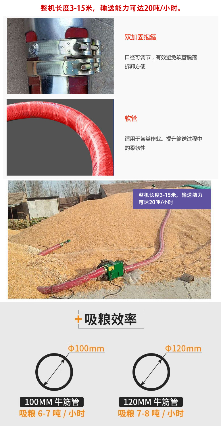 簡(jiǎn)介:吸糧機(jī)是一種通過(guò)管道輸送散糧的設(shè)備。它的主要功能是將谷物從一個(gè)設(shè)備運(yùn)輸?shù)搅硪粋€(gè)設(shè)備。常見(jiàn)的是把地上的散糧運(yùn)到卡車(chē)上,卡車(chē)上的散糧運(yùn)到糧庫(kù),體積小、攜帶方便。