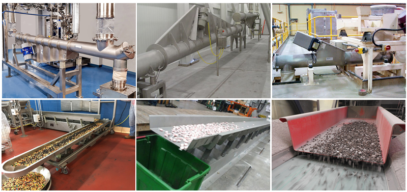 載體:可選擇U型槽和管狀的,也可以制成敞開式或密封式,以滿足不同的工藝流程。料槽的進(jìn)料和出料也可根據(jù)需要制成單點/多點進(jìn)料,單點/多點出料等多種型式。